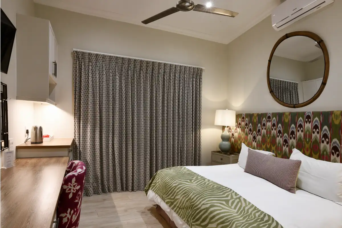 With views of our garden; previous guests have loved this room that comes with everything needed for a great stay. The room is accessed from the stoep instead of going through the main house.